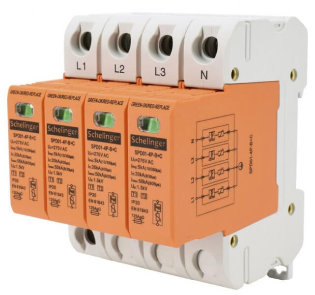 4 pólusú túlfeszültséglevezető "B+C" karakterisztika