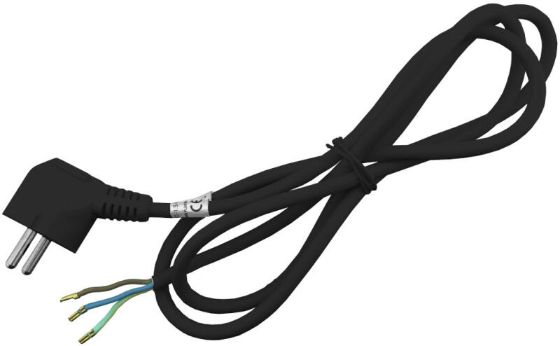 Entac Szerelhető hálózati kábel 3G1.5 1.5m Földelt Dugvillával Fekete – 3680 W teljesítmény, IP20 védelem.