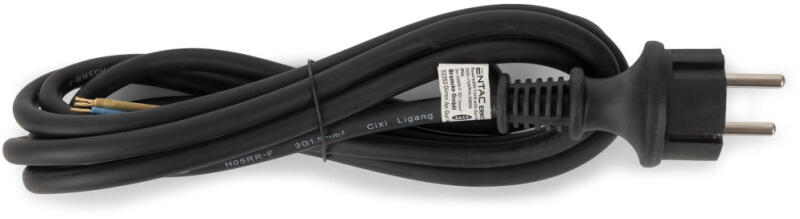 Entac Szerelhető hálózati kábel 3G1.5 3m Földelt Dugvillával Fekete IP44 – 3680 W teljesítmény, IP44 védelem.