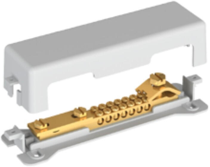 J. Pröpster 111070 EPH potenciálkiegyenlítő sín , műanyag fedlappal DIN VDE 0100 rész 410/540 szerint. Alkalmas a következők csatlakoztatására: