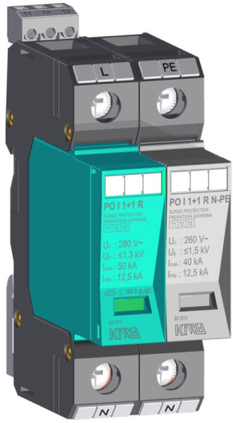 KIWA PO I 1+1 R 280V túlfeszültség levezető távjelzős 12, 5kA T1+T2 (B+C) 81.011 (KIWA81011)