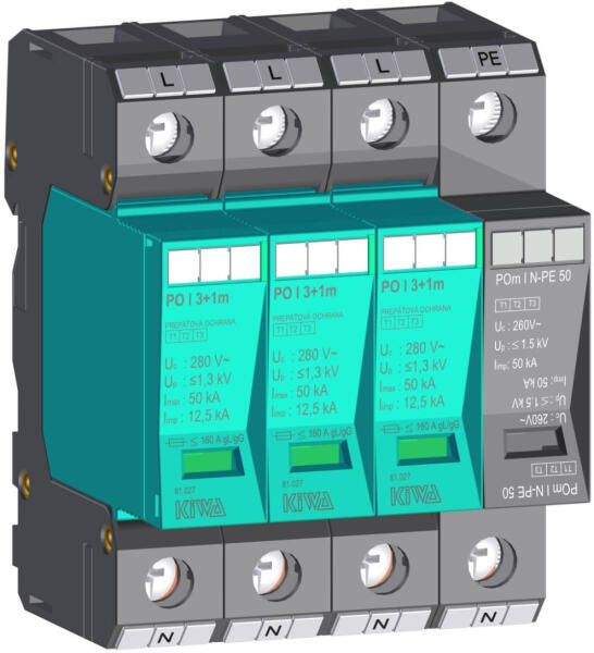 KIWA PO I 3+1 m 280V túlfeszültség levezető 12,5kA T1+T2 (B+C) 81.027