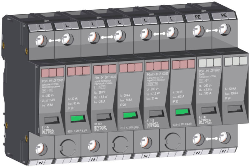 KIWA POm I 3+1 LCF 100/25kA szikraköz+varisztor túlfeszültség levezető T1+T2 (B+C) 81.142