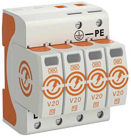 Obo-bettermann Túlfeszültség-levezető 4P C T2 TNC TN-S TN-C-S TN 230V/AC 40kA 4M V20-4-280 OBO-BETTERMANN (5095164)