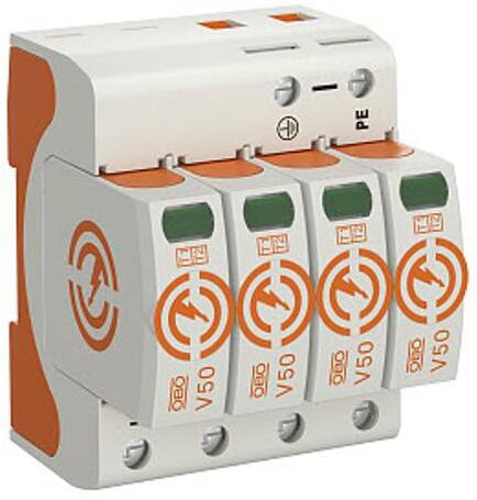 Túlfeszültség-levezető kombi 4P 1+2 TNC TN-S TN-C-S TN 230V/AC 350V/DC V50-B+C 4 OBO-BETTERMANN