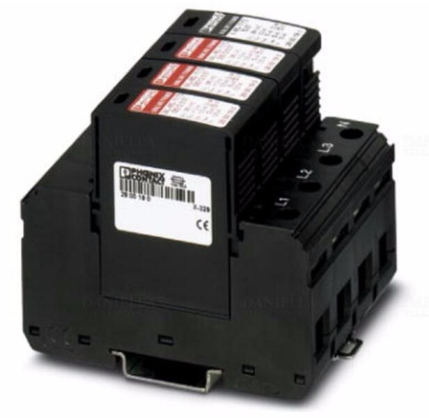 Univerzális dugaszolható, varisztor alapú villámáram- / túlfeszültséglevezető, külön N és PE vezetékkel ellátott 3 fázisú áramellátó hálózatokhoz (5 vezetékes rendszer: L1, L2, L3, N, PE), a III. és IV. villámvédelmi osztályhoz.