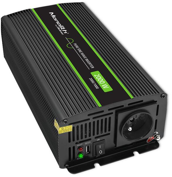 Tiszta szinuszos inverterA Qoltec inverter egy olyan eszköz, ami az autóba szerelt 12V-os egyenfeszültséget 230V-os váltakozó feszültségre alakítja.  Ideális olyan helyeken, ahol nincs közvetlen hozzáférés az elektromos hálózathoz.  A termék európai csatlakozókkal kompatibilis beépített hálózati aljzatokkal és USB porttal rendelkezik. TeljesítményNévleges teljesítmény: 1000WCsúcsteljesítmény: 2000W (5 másodperc)FelhasználhatóságKonyhai felszerelés: hűtőszekrény, mikrohullámú sütő, turmixgép, kávéfőző, fagyasztóIrodai felszerelés: laptop, számítógép, nyomtatóEgyéb: elektromos kéziszerszámok, páraelszívó, hajszárító, ventilátor, TV, játékkonzol, rádió, zenei berendezések, napelemek, csónak töltés, klíma, CO tűzhely