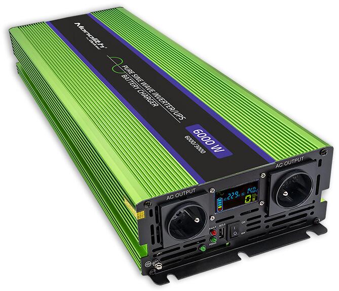 Tiszta szinuszos inverter akkumulátorralQoltec márkájú inverter UPS funkcióval és akkumulátor töltéssel, 3000W folyamatos teljesítménnyel és tiszta szinuszos hullámformával.  Ideális olyan helyeken, ahol nincs közvetlen hozzáférés az elektromos hálózathoz.  A termék két beépített európai csatlakozóval kompatibilis hálózati aljzattal, USB porttal, LCD kijelzővel, két ventilátorral és a készülék működését jelző LED-ekkel rendelkezik. A csomag biztosítékkészlettel, vezetékekkel és tápkábellel rendelkezik. TeljesítményNévleges teljesítmény: 3000WCsúcsteljesítmény: 6000W (5 másodperc)FelhasználhatóságKonyhai felszerelés: hűtőszekrény, mikrohullámú sütő, turmixgép, kávéfőző, vízforraló, fagyasztó, sütőIrodai felszerelés: laptop, számítógép, nyomtatóEgyéb: elektromos szerszámok, páraelszívó, hajszárító, ventilátor, TV, játékkonzol, rádió, zenei berendezések, napelemek, csónaktöltés, klíma, CO tűzhely