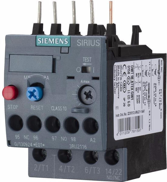 Siemens 3RU2116-1JB0 hőkioldó, 7 - 10A, 1NO+1NC, S00, csavaros (3RU21161JB0)