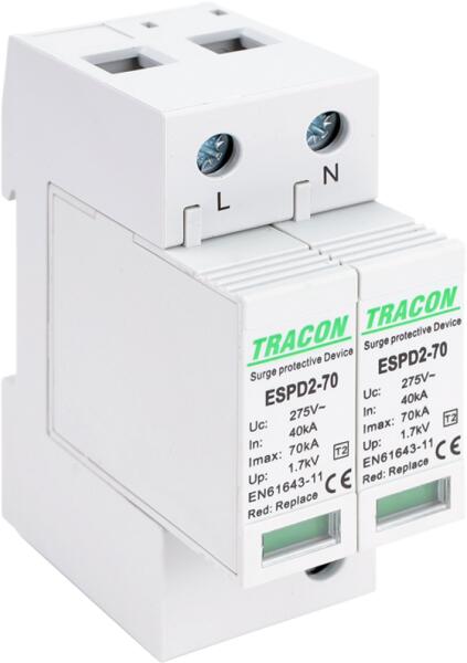 Tracon Electric Tracon ESPD2-70-2P T2 AC típusú túlfeszültség levezető, cserélhető betéttel Uc: 275V; In: 40kA; Imax: 70kA; Up: 1, 7kV; 2P (ESPD2-70-2P)