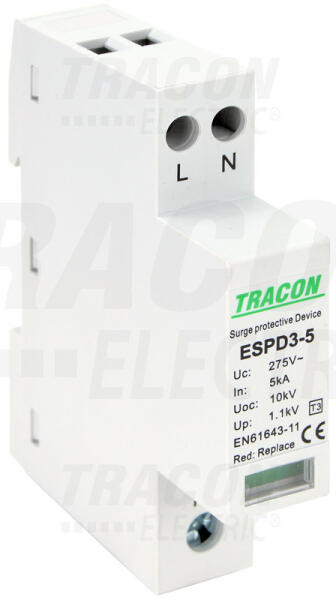 Tracon Electric Tracon ESPD3-5-2P, T3 AC típusú túlfeszültség levezető, egybeépített Uc: 275V; In: 5kA; Uoc: 10kV; Up: 1, 2kV; 2P (ESPD3-5-2P)