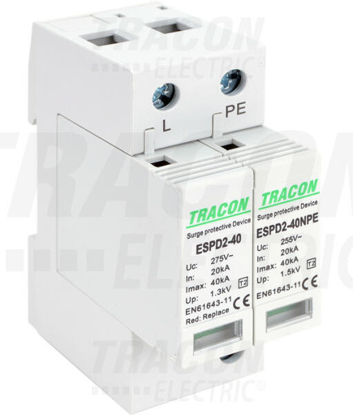 TRACON ESPD2-40-1+1P ESPD2-40-1+1P T2 AC típusú túlfeszültség levezető, cserélhető betéttel (ESPD2-40-1-1P)