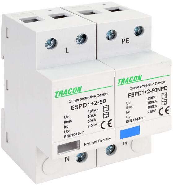 Tracon T1+T2 AC típusú túlfeszültség levezető, egybeépített 1+1P 50kA 385V (ESPD1-2-50-1-1P)