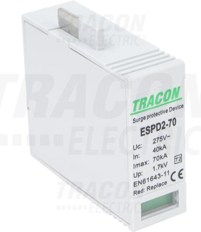 Tracon T2 AC típusú túlfeszültség levezető betét 70 M Uc: 275V; In_40kA; Imax_70kA; Up_1, 7kV (ESPD2-70M)