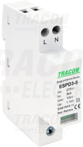 Tracon T3 AC típusú túlfeszültség levezető, egybeépített Uc: 275V; In_5kA; Uoc_10kV; Up_1, 2kV; 2P (ESPD3-5-2P)