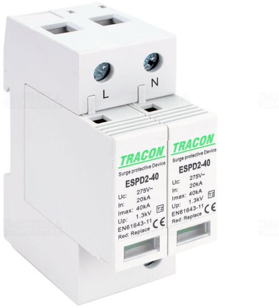 Tracon Túlfeszültség levezető cserélhető betéttel, T2 AC típusú 2P, ESPD2-40-2P (D2-40-2P)