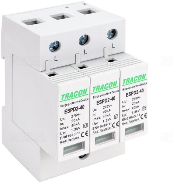 Tracon Túlfeszültség levezető cserélhető betéttel, T2 AC típusú 3P, ESPD2-40-3P (D2-40-3P)