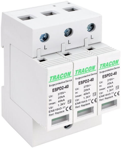 Tracon túlfeszültség levezető cserélhető betéttel, T2 AC típusú 3P, ESPD2-40-3P (ESPD2-40-3P)
