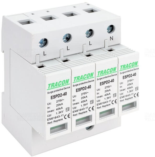 Tracon Túlfeszültség levezető cserélhető betéttel, T2 AC típusú 4P, ESPD2-40-4P (D2-40-4P)