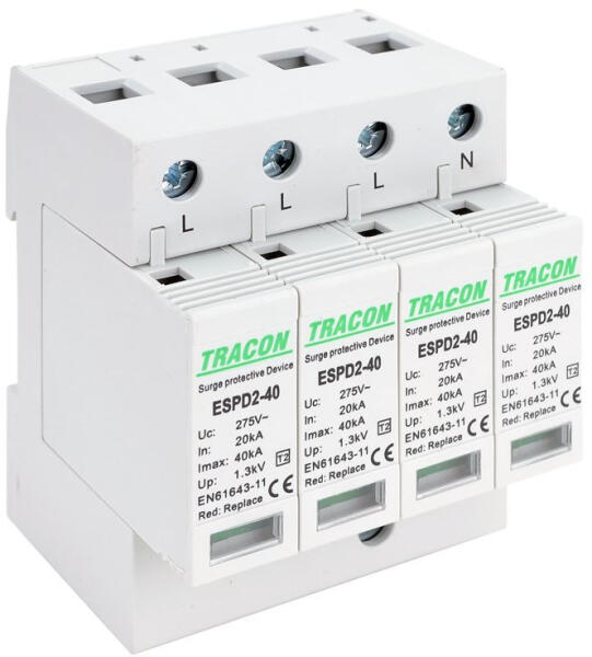 Tracon túlfeszültség levezető cserélhető betéttel, T2 AC típusú 4P, ESPD2-40-4P (ESPD2-40-4P)