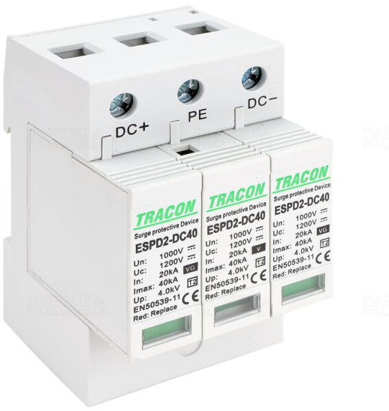 Tracon Túlfeszültség levezető cserélhető betéttel, T2 DC típusú ESPD2-DC40-1000 (D2-DC40-1000)