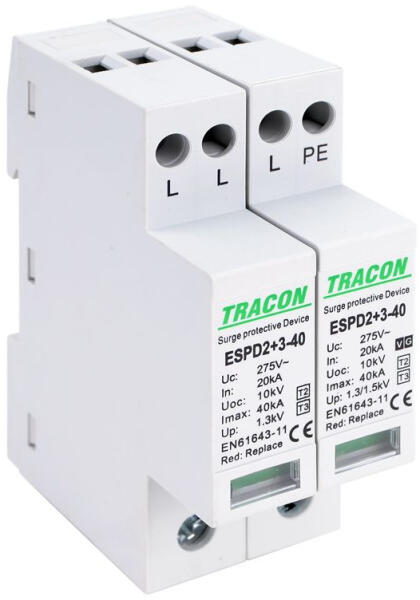 Tracon túlfeszültség levezető T2+T3 egybeépített AC típusú 3+1P Imax40kA ESPD2+3-40-3+1P (ESPD2+3-40-3+1P)